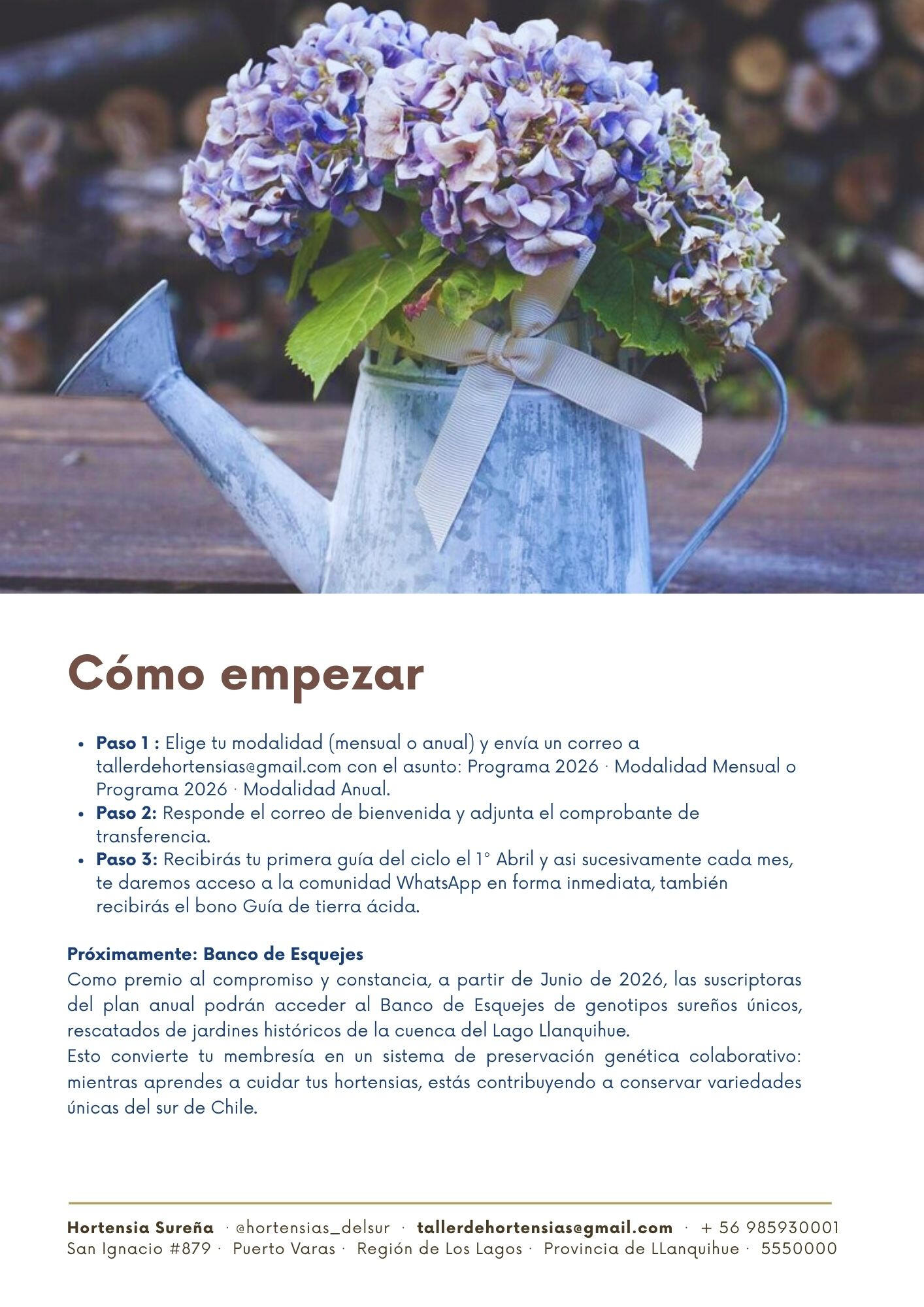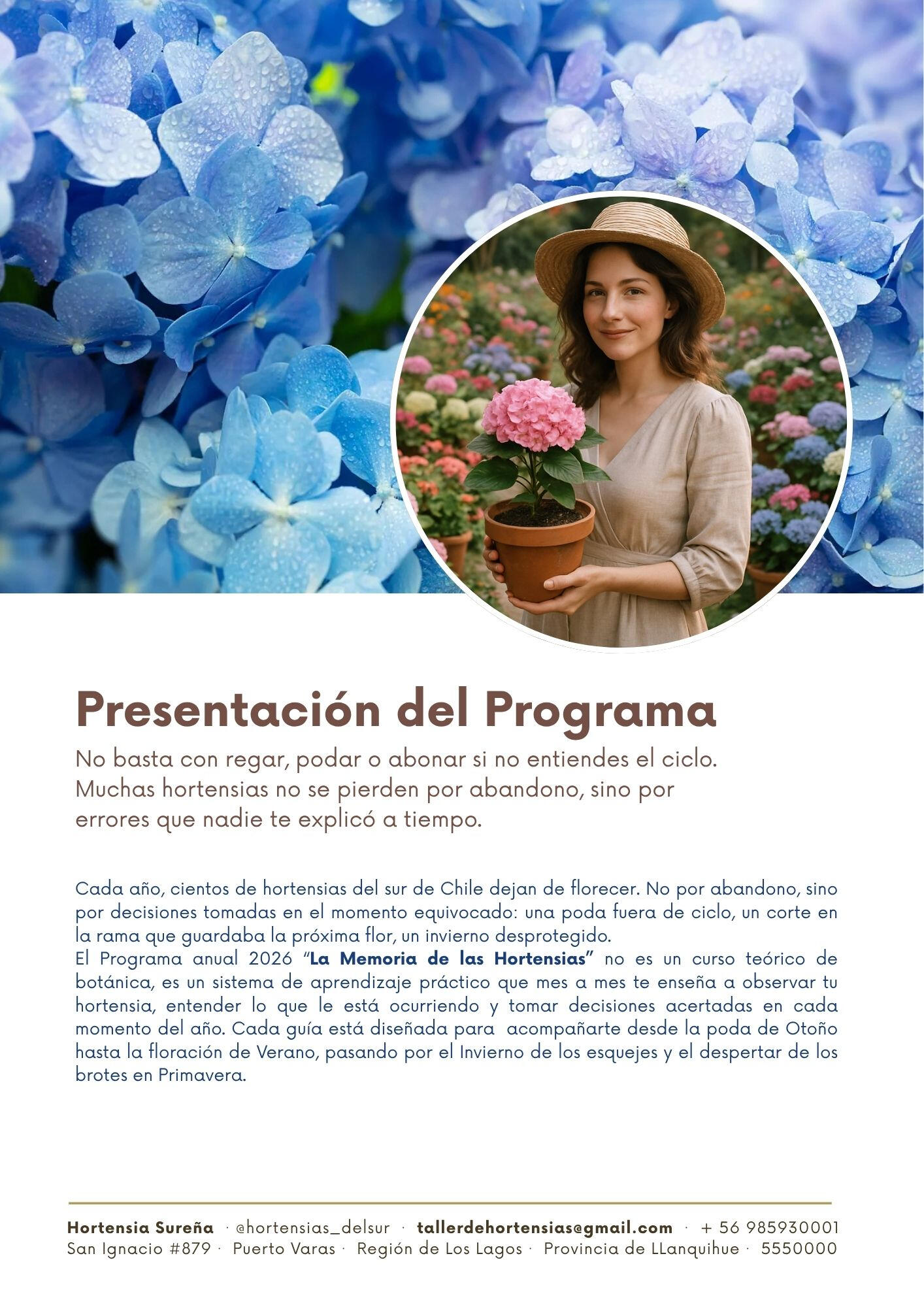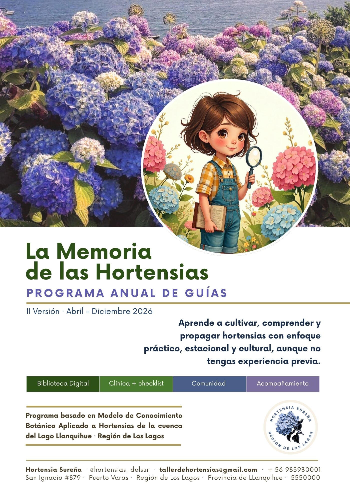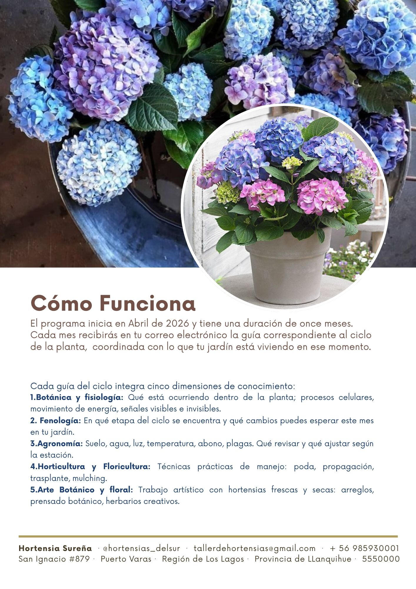 Este programa anual te acompañará mes a mes para aprender a observar, cuidar y multiplicar hortensias siguiendo el ritmo natural de las estaciones.
